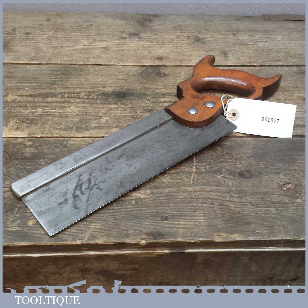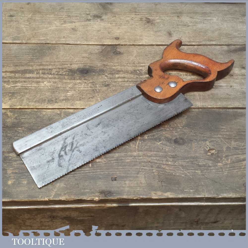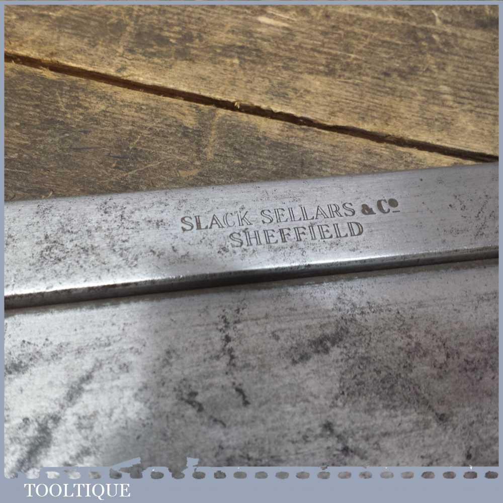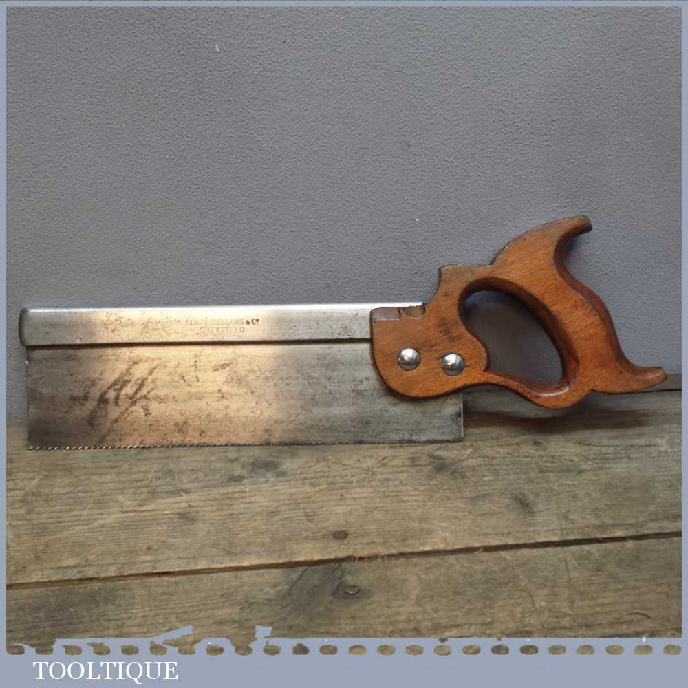 Vintage Slack Sellars & Co 10” steel back tenon saw with approx 12 teeth per Inch. The saw is pretty sharp and is straight and cuts well so is ready for use.