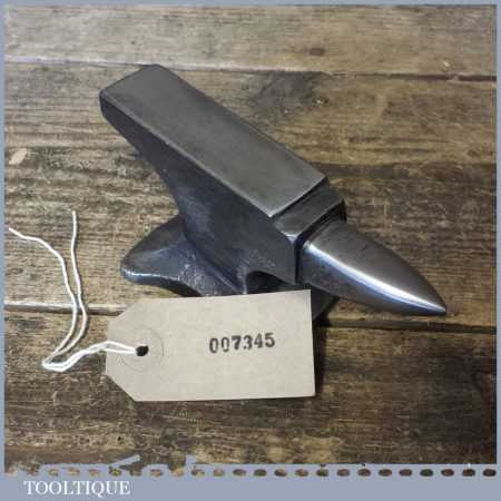 Vintage small cast steel silversmith’s anvil in good used condition. The anvil measures approx. 5 ½” across the top.