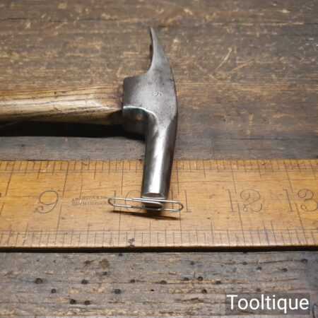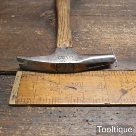 Vintage Snail Brand upholsterer’s magnetic tack hammer with hickory handle in good used condition.