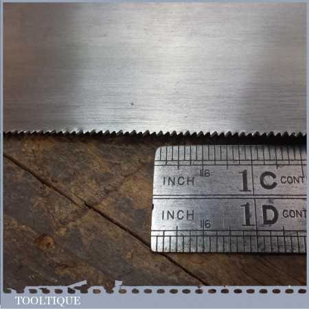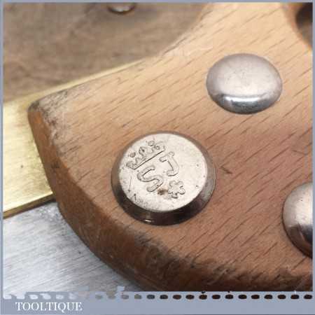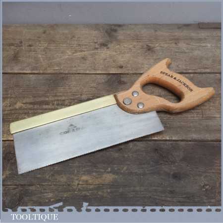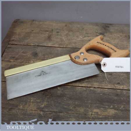 Vintage Spear and Jackson brass back dovetail saw with wooden handle and lots of life in the blade. It’s nice and sharp and straight and with approx 15 teeth per inch (tpi) and is a nice little cross back saw by a renowned saw maker.