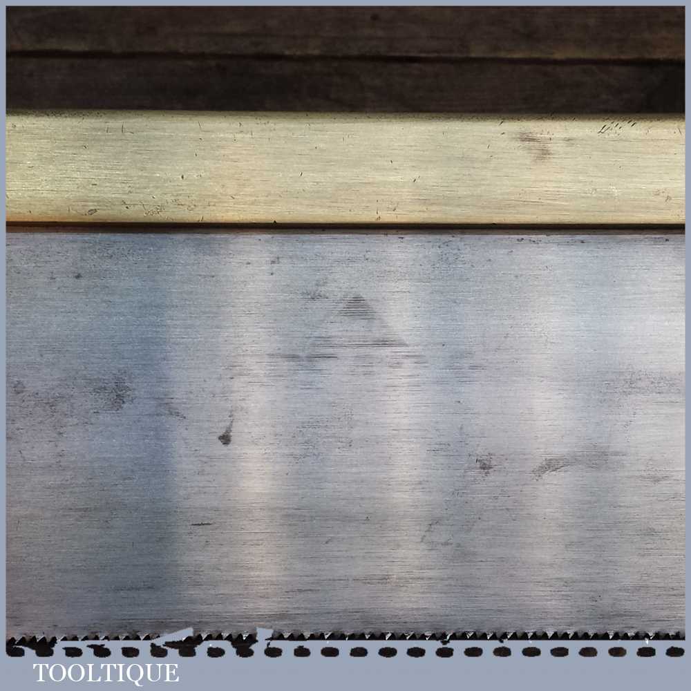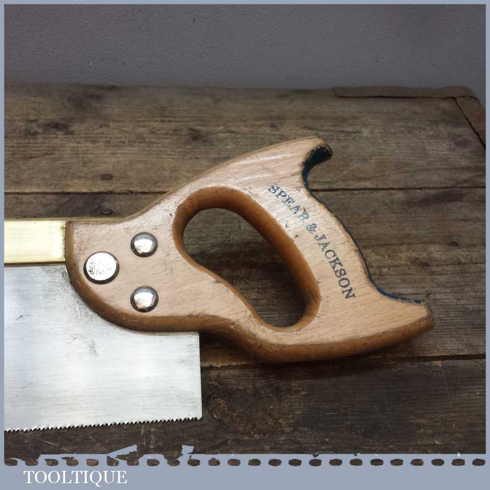 Vintage Spear and Jackson 10” brass back tenon saw with 15 tpi. It is straight and has been sharpened as cross cut and set ready for use.
