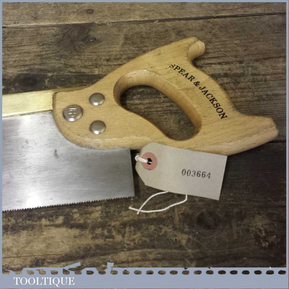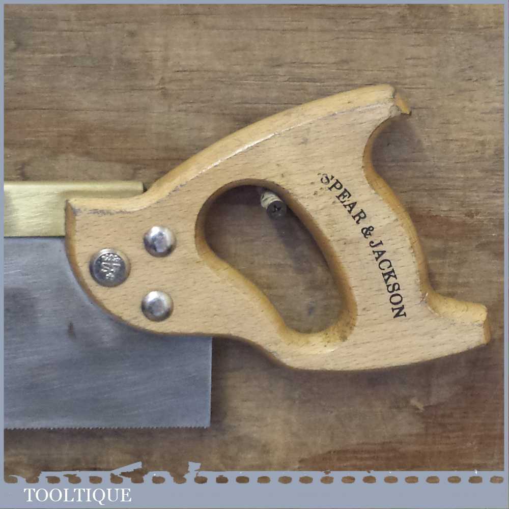 Vintage Spear and Jackson 10” long brass back handsaw with 15 tpi which has been sharpened as a rip and is nice and straight ready to use.