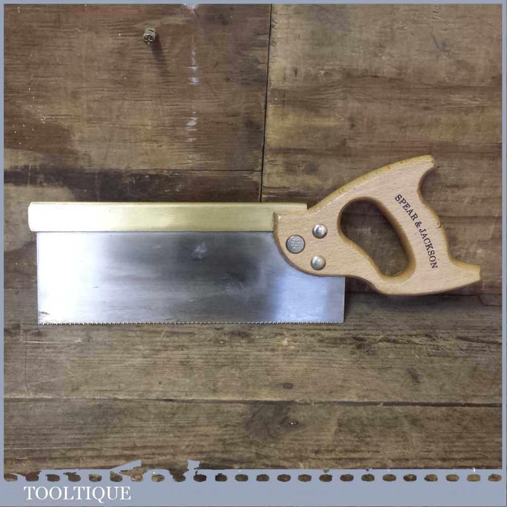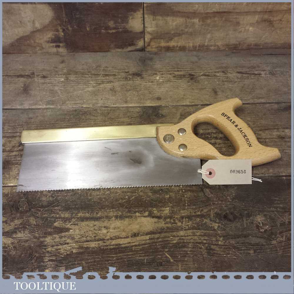 Vintage Spear and Jackson 10” long brass back saw with 15 tpi which has been sharpened as a rip and is nice and straight ready to use.