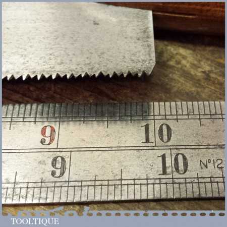 Vintage Spear and Jackson 10” steel back dovetail saw with 12 teeth per inch (12 TPI). The saw is straight and pretty sharp although I always say a seasoned woodworker may improve it.