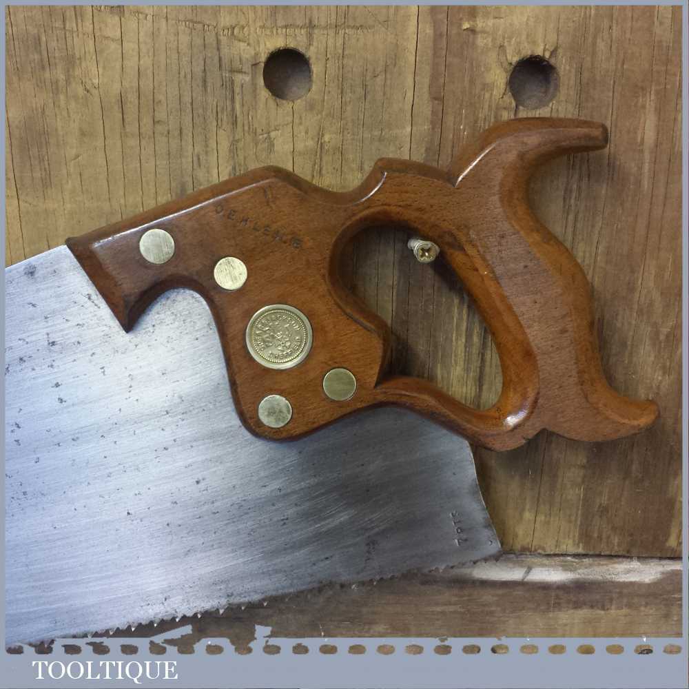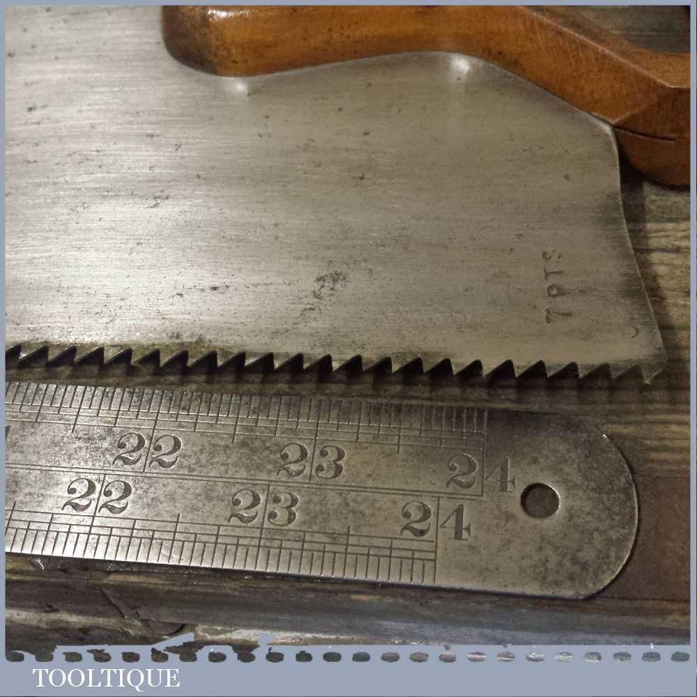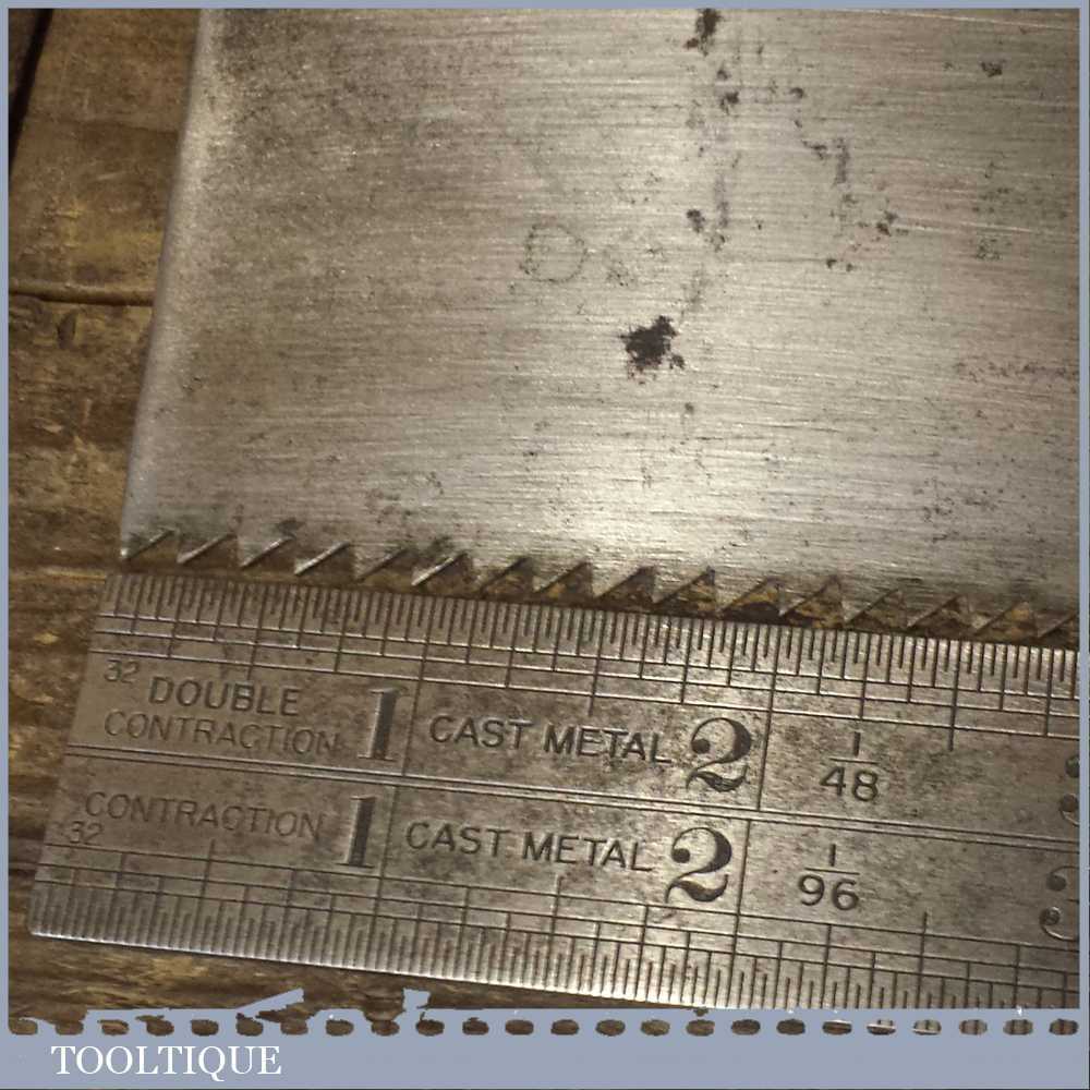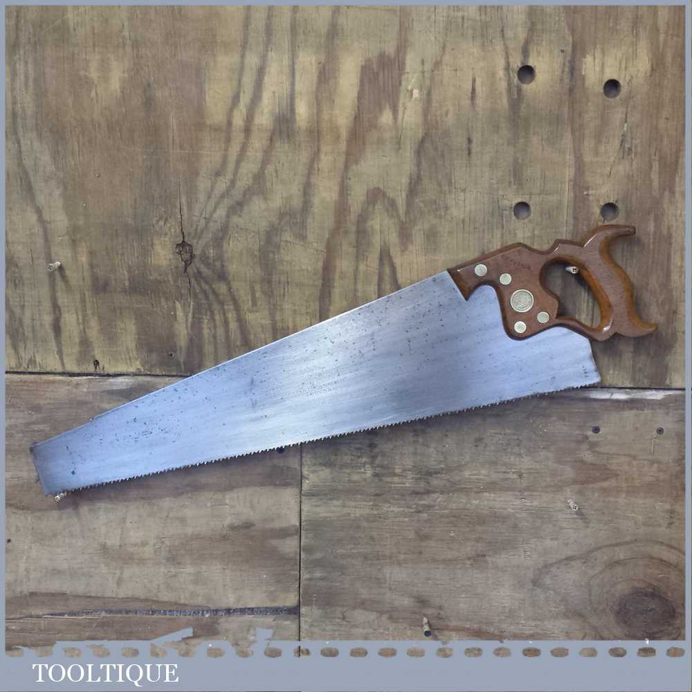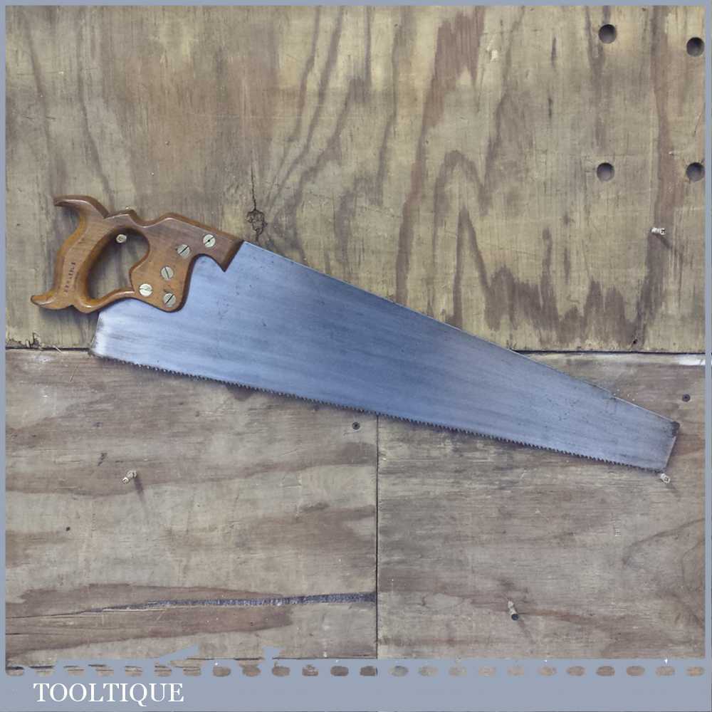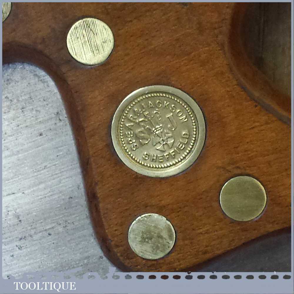 Vintage Spear and Jackson (Leapfrog) No: 118 cross cut hand saw with 6 tpi which has been refurbished, sharpened & set ready for use. This saw certainly has quality steel and took some effort to sharpen it and it is straight and sharp with a beech wood handle. It’s a beautiful old machine ground saw with good clear maker’s marks to the saw blade. These older spear and Jackson saws are a world apart from what they made later on.