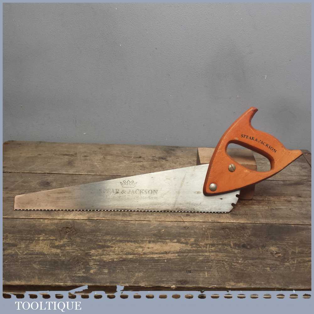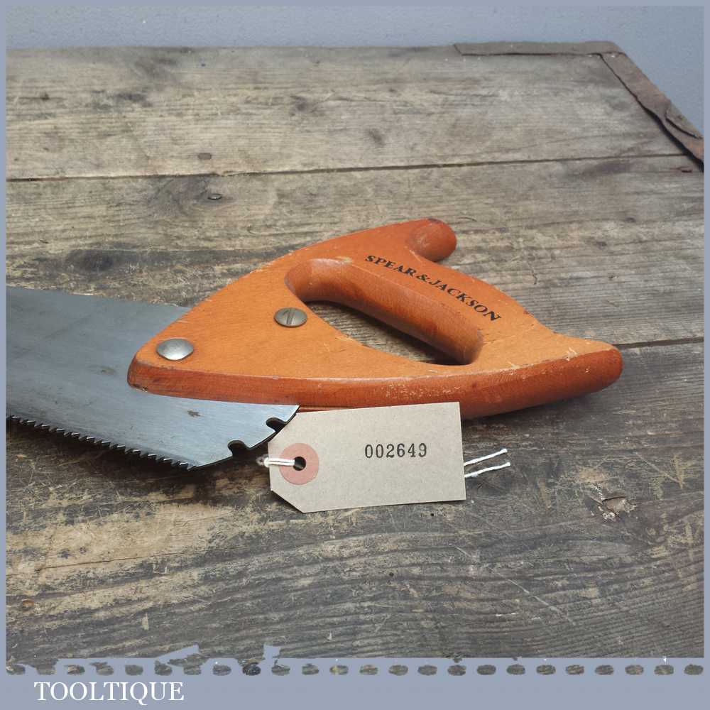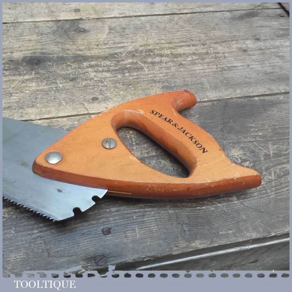 Vintage Spear and Jackson multipurpose adjustable angle saw with toughened blade suitable for other building materials other than wood in good overall condition, quite sharp and cuts well enough.