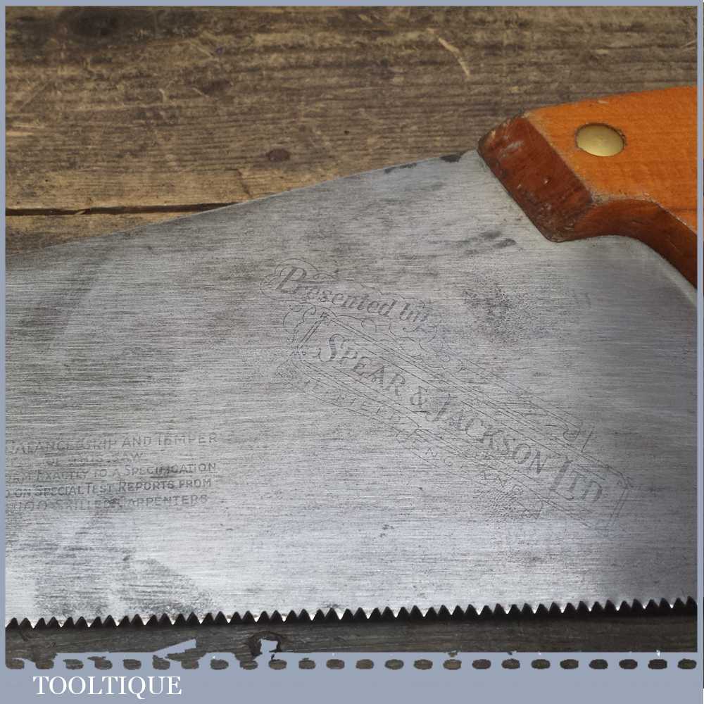 Vintage Spear and Jackson No: 88 Superior panel saw approx 10 tpi and 22” long. The saw is sharp and straight and in good overall condition.