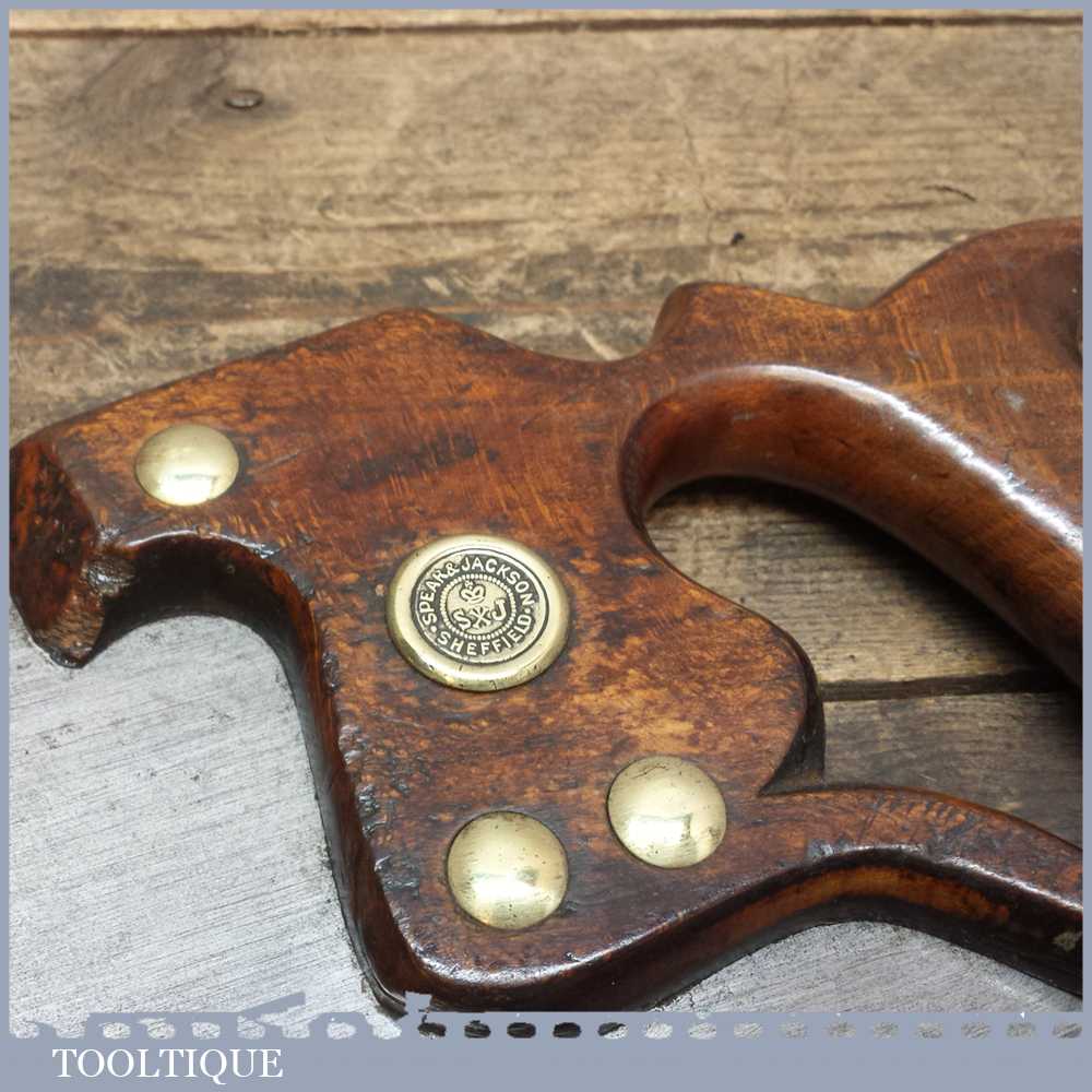 Vintage Spear and Jackson of Sheffield 20 ½” cross cut saw with approx 9 teeth per inch and is sharp and straight. This is from a time when Spear and Jackson had a reputation for high quality and craftsmanship