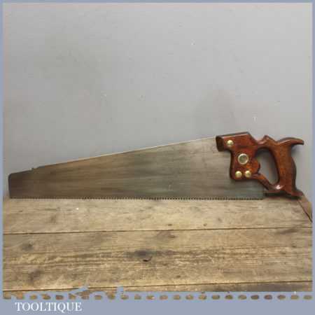 Vintage Spear and Jackson of Sheffield 20 ½” cross cut saw with approx 9 teeth per inch and is sharp and straight. This is from a time when Spear and Jackson had a reputation for high quality and craftsmanship