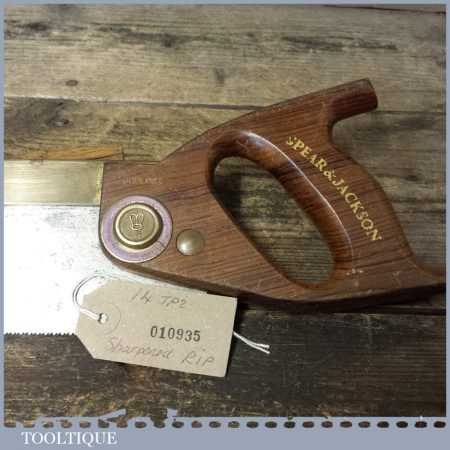 Vintage Spear & Jackson 10” brass back tenon saw with 14 tpi, fully refurbished and sharpened as a rip ready for use. This has a rosewood handle and is from their superior range.