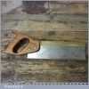 The saw has been thoroughly cleaned, jointed, resharpened and set by hand so that all the hard work of getting an old vintage saw right has been undertaken. We do this so that the next sharpening is easier and no more than a quick freshen up would be required. Those who are familiar with sharpening will know this is no small job and requires skill, effort and time to achieve good results.