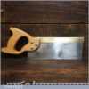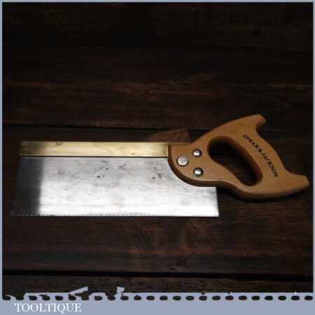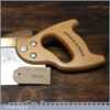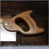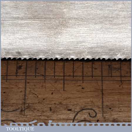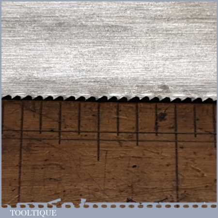 The saw has been thoroughly cleaned including under the handle, jointed, resharpened and set by hand so that all the hard work of getting an old vintage saw right has been undertaken. We do this so that the next sharpening is easier and no more than a quick freshen up would be required. Those who are familiar with sharpening will know this is no small job and requires skill, effort and time to achieve good results