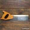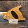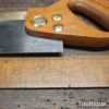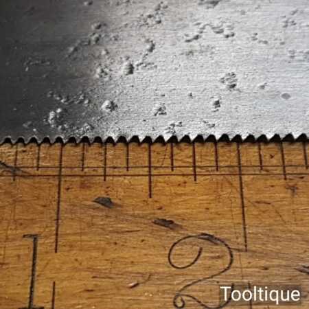 The saw has been thoroughly cleaned including under the handle, jointed, resharpened and set by hand so that all the hard work of getting an old vintage saw right has been undertaken. We do this so that the next sharpening is easier and no more than a quick freshen up would be required. Those who are familiar with sharpening will know this is no small job and requires skill, effort and time to achieve good results