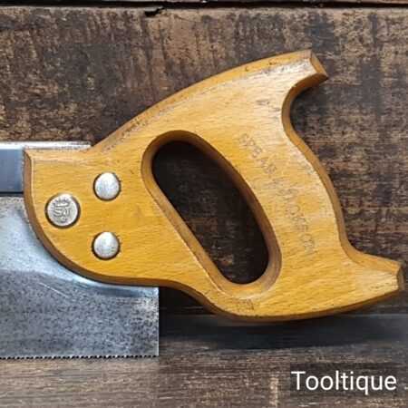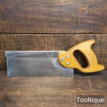 Vintage Spear & Jackson 10” dovetail steel back saw with 12 Tpi a beechwood handle fully refurbished ready for use and in good used condition. Note: Sharpened rip to suit end grain.