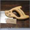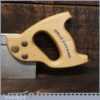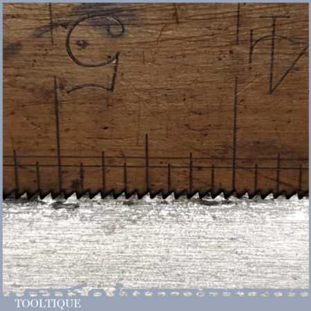 The saw has been thoroughly cleaned including under the handle, jointed, resharpened and set by hand so that all the hard work of getting an old vintage saw right has been undertaken. We do this so that the next sharpening is easier and no more than a quick freshen up would be required. Those who are familiar with sharpening will know this is no small job and requires skill, effort and time to achieve good results