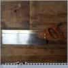 The saw has been thoroughly cleaned including under the handle, jointed, resharpened and set by hand so that all the hard work of getting an old vintage saw right has been undertaken. We do this so that the next sharpening is easier and no more than a quick freshen up would be required. Those who are familiar with sharpening will know this is no small job and requires skill, effort and time to achieve good results.