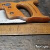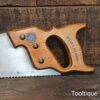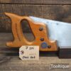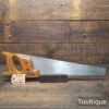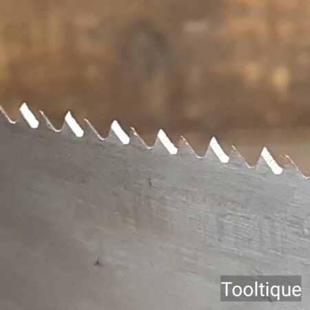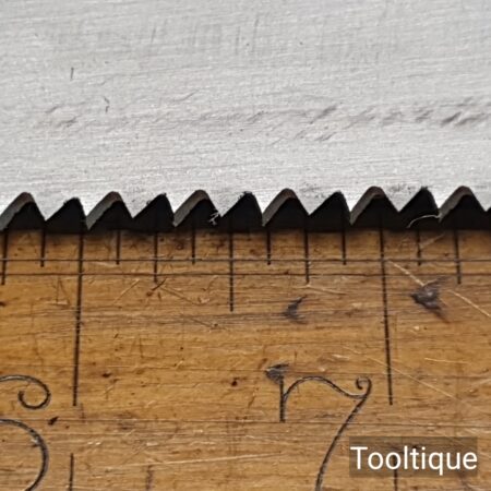 Vintage Spear & Jackson 18” Cross Cut Panel Saw with 7 Tpi, refurbished & Sharpened ready for use and in good used condition. Note: Sharpened using all three disciplines of Rake, Slope & Fleam more accurate and efficient cut. The saw has been thoroughly cleaned, jointed, resharpened and set by hand so that all the hard work of getting an old vintage saw right has been undertaken. We do this so that the next sharpening is easier and no more than a quick freshen up would be required. Those who are familiar with sharpening will know this is no small job and requires skill, effort and time to achieve good results.