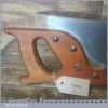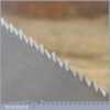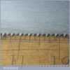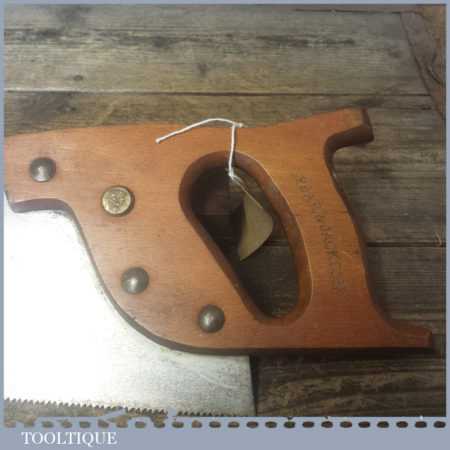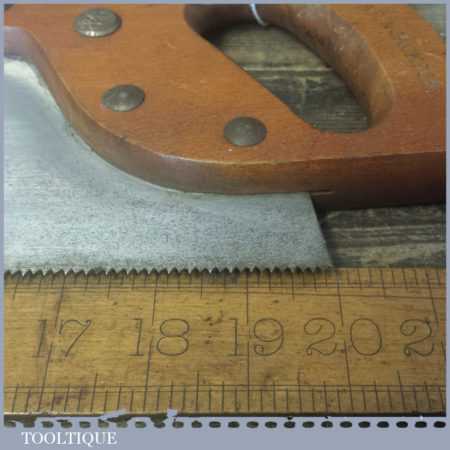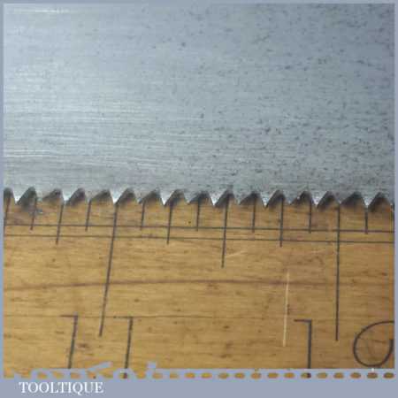 The saw has been thoroughly cleaned, jointed, resharpened and set by hand so that all the hard work of getting an old vintage saw right has been undertaken. We do this so that the next sharpening is easier and no more than a quick freshen up would be required. Those who are familiar with sharpening will know this is no small job and requires skill, effort and time to achieve good results.