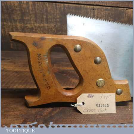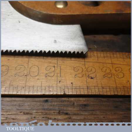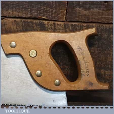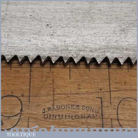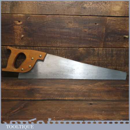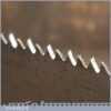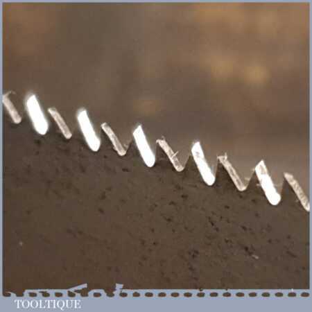The saw has been thoroughly cleaned, jointed, resharpened and set by hand so that all the hard work of getting an old vintage saw right has been undertaken. We do this so that the next sharpening is easier and no more than a quick freshen up would be required. Those who are familiar with sharpening will know this is no small job and requires skill, effort and time to achieve good results.