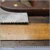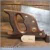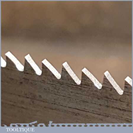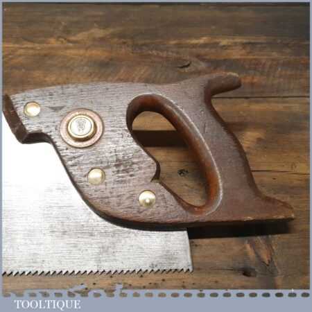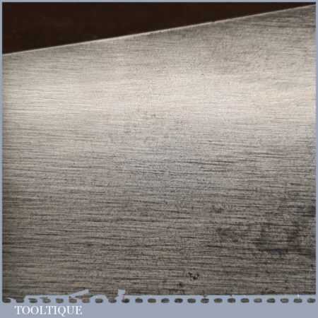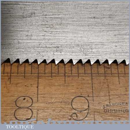 The saw has been thoroughly cleaned, jointed, resharpened and set by hand so that all the hard work of getting an old vintage saw right has been undertaken. We do this so that the next sharpening is easier and no more than a quick freshen up would be required. Those who are familiar with sharpening will know this is no small job and requires skill, effort and time to achieve good results.