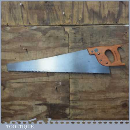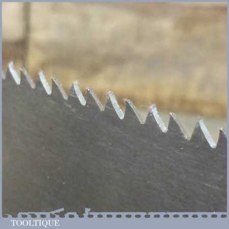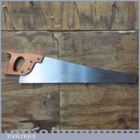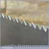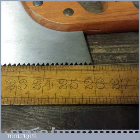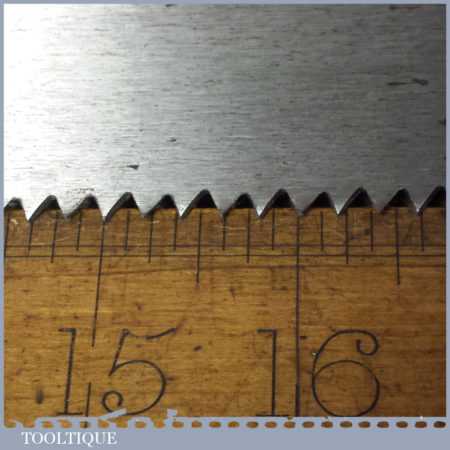 The saw has been thoroughly cleaned, jointed, resharpened and set by hand so that all the hard work of getting an old vintage saw right has been undertaken. We do this so that the next sharpening is easier and no more than a quick freshen up would be required. Those who are familiar with sharpening will know this is no small job and requires skill, effort and time to achieve good results.
