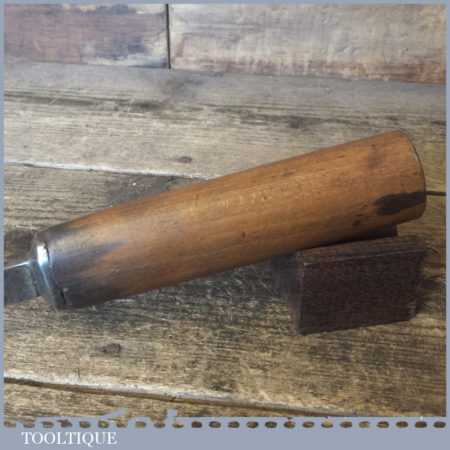 The chisel has been checked to ensure the tang is seated properly and the handle is solid and fit for use. All refurbished chisels are water cooled during the sharpening process to ensure the tempering is not affected. These old cast steel chisels are hand forged and far superior in quality because of the high carbon steel that was used which produces a keener edge, this was also generally used throughout the full length.