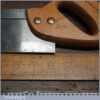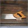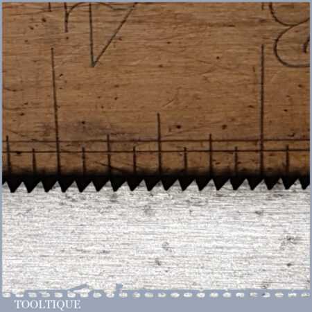 The saw has been thoroughly cleaned, jointed, resharpened and set by hand so that all the hard work of getting an old vintage saw right has been undertaken. We do this so that the next sharpening is easier and no more than a quick freshen up would be required. Those who are familiar with sharpening will know this is no small job and requires skill, effort and time to achieve good results.