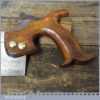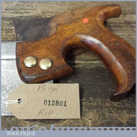 The saw has been thoroughly cleaned, jointed, resharpened and set by hand so that all the hard work of getting an old vintage saw right has been undertaken. We do this so that the next sharpening is easier and no more than a quick freshen up would be required. Those who are familiar with sharpening will know this is no small job and requires skill, effort and time to achieve good results.