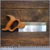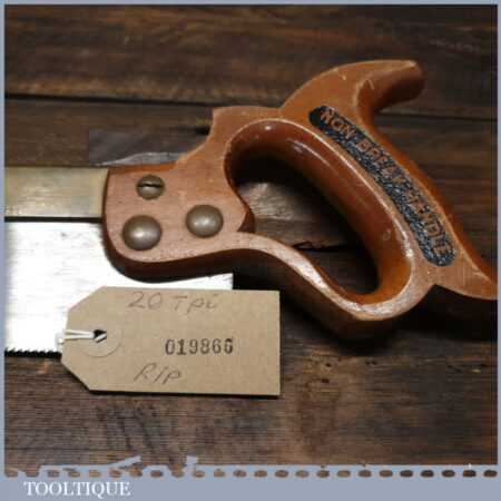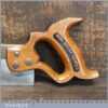 The saw has been thoroughly cleaned including under the handle, jointed, resharpened and set by hand so that all the hard work of getting an old vintage saw right has been undertaken. We do this so that the next sharpening is easier and no more than a quick freshen up would be required. Those who are familiar with sharpening will know this is no small job and requires skill, effort and time to achieve good results
