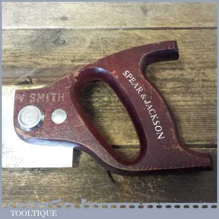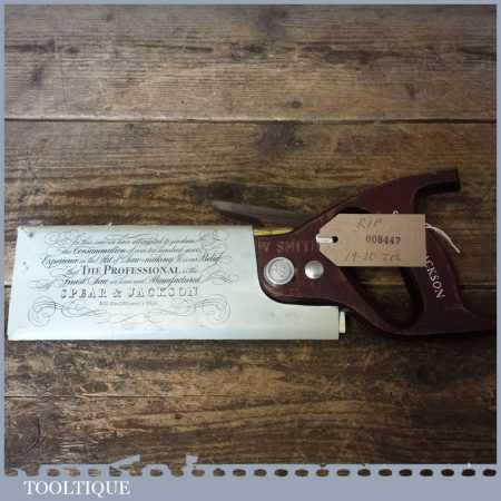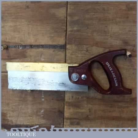 Vintage Spear & Jackson Professional 8” brass back dovetail saw in original sleeve with 19/20 tpi, fully refurbished and sharpened as a rip ready for use. Note: The saw plate does have some pitting although it sharpened just fine.