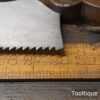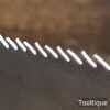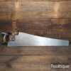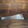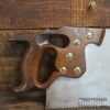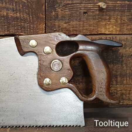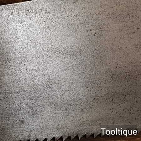 Vintage Spear & Jackson Progressive Rip Saw with a thumb grip handle 5”-4” Tpi, fully refurbished ready for use and in good used condition. Note: This Originally had a badly damaged Disston Handle but given there is No Etching I replaced it with another similar style Spear & Jackson handle that required repair to the Top Horn (Dowelled for additional strength). Smaller teeth at the toe are sharpened with a relaxed rake for easy start and the teeth become progressively bigger and more aggressive towards the handle. This is a very good user grade saw that I have done my upmost to ensure it doesn’t deceive but instead offers far greater qualities the new owner will soon come to recognise. The saw has been thoroughly cleaned, jointed, resharpened and set by hand so that all the hard work of getting an old vintage saw right has been undertaken. We do this so that the next sharpening is easier and no more than a quick freshen up would be required. Those who are familiar with sharpening will know this is no small job and requires skill, effort and time to achieve good results.