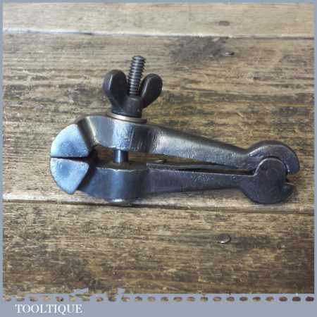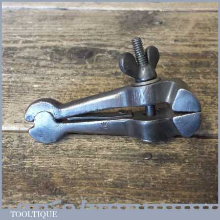 Vintage spring-loaded cast steel hand vice (stamped with crowsfoot broad arrow) in good used condition and ready for use.