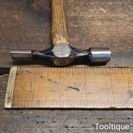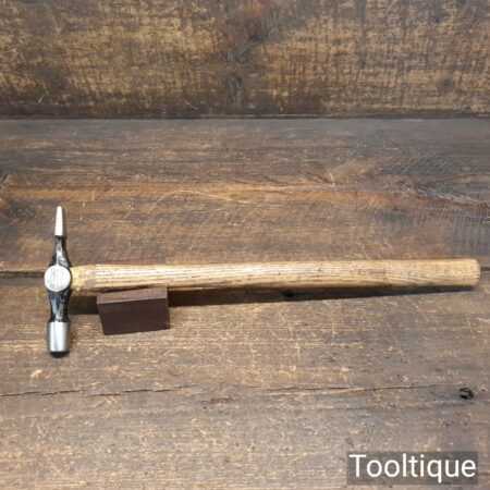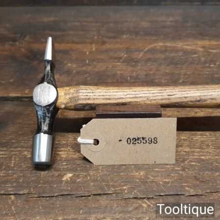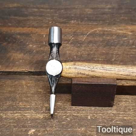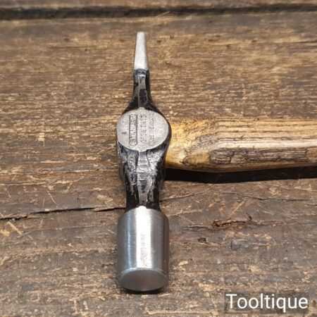 Vintage Stanley 3 ½” oz cross pein pin hammer with beechwood handle in unused condition. Note: The head is tight to the shaft.