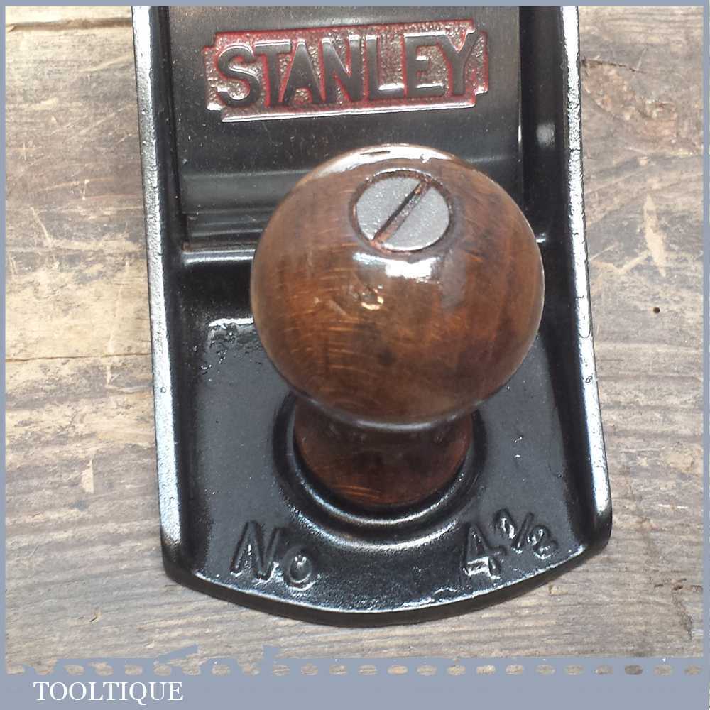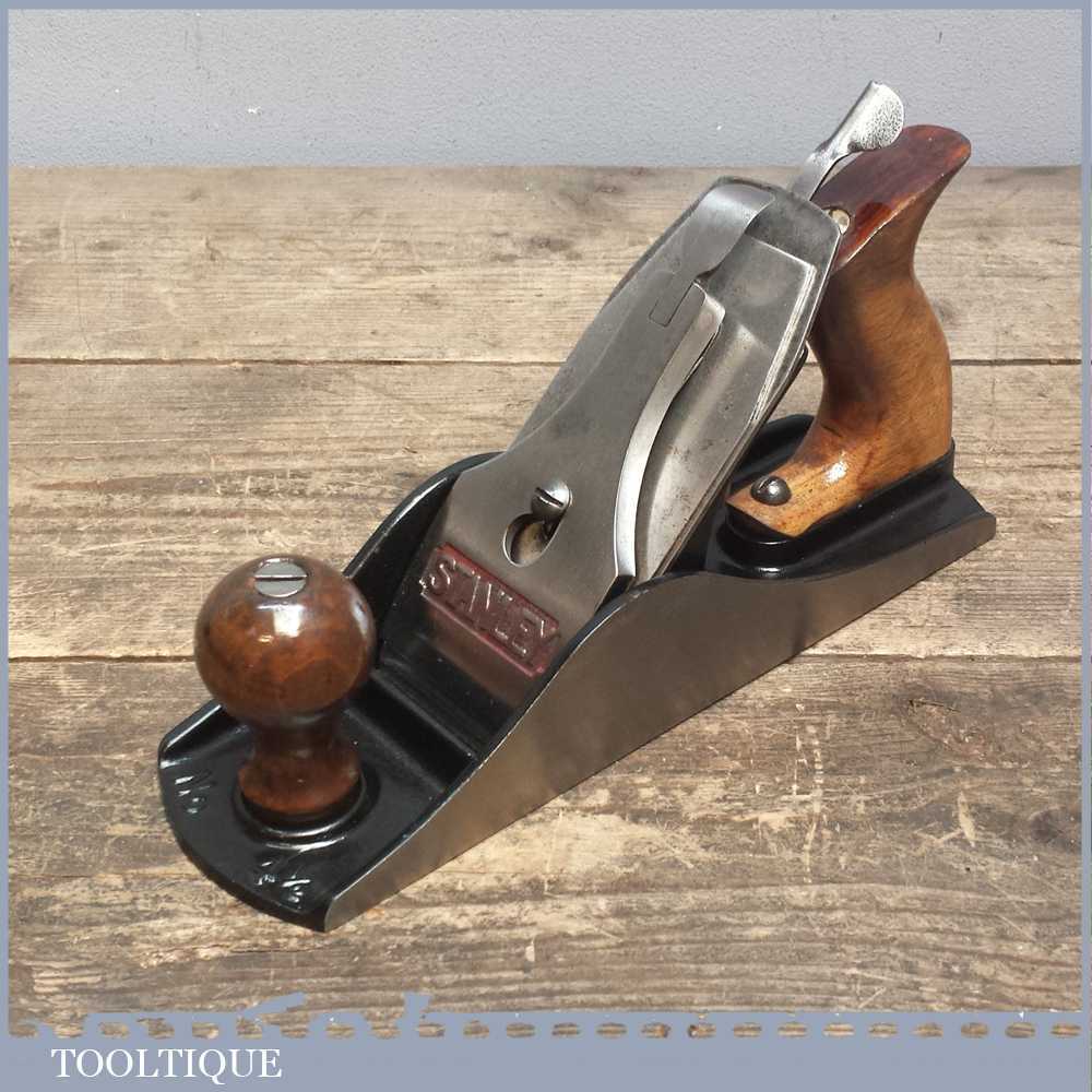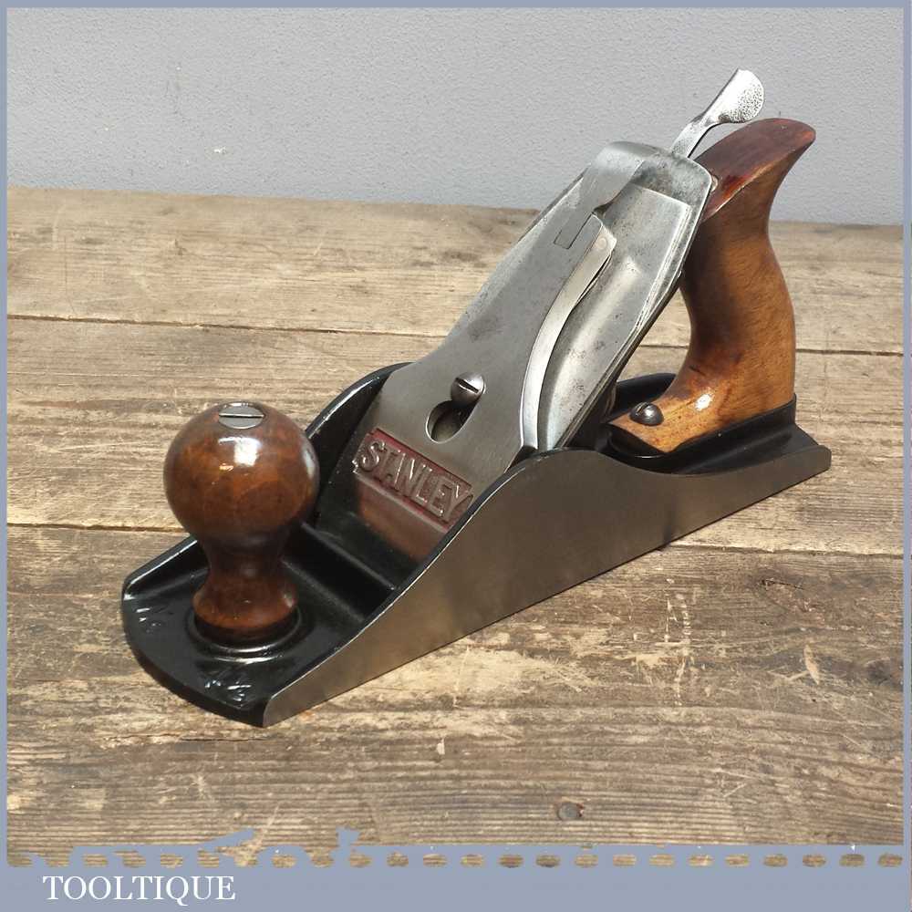 Vintage Stanley Acorn No: 4 ½ smoothing plane fully refurbished and ready to use. It has a Stanley lever cap and came in black rather than red which I didn’t notice when buying thus why it got restored in this colour. These Acorn planes were Stanley’s budget plane of the time which are ironically better than their modern equivalents.