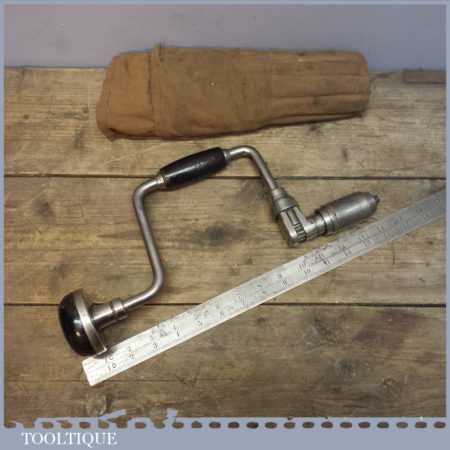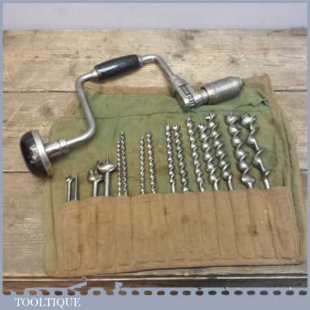 Vintage Stanley Brace with wooden handles refurbished ready for use along with a roll of ridgeway bits.