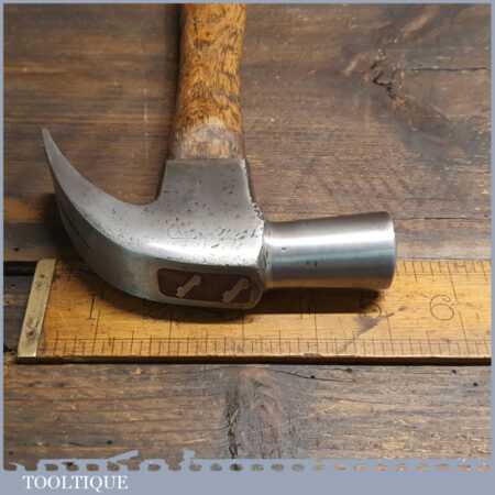 Vintage Stanley carpenters cast steel claw hammer with wooden handle in good used condition.