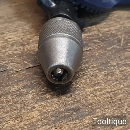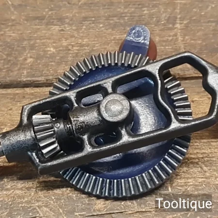 Vintage Stanley Chapman Single Pinion Egg Beater Type Hand Drill with a keyless Chuck, refurbished ready for use and in good used condition. Note: Free Moving and the chuck has been internally cleaned and oiled.