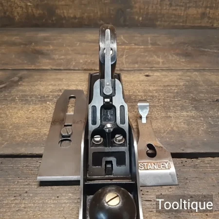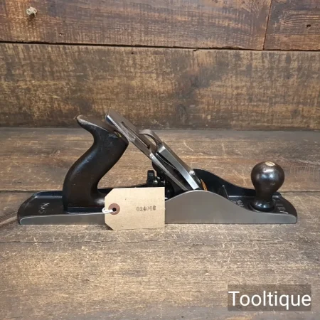 Vintage Stanley England Late War Era No 5 Jack Plane with Beechwood Handles, fully refurbished ready for use and in good used condition. Note: This has a Bakelite Adjustment Screw which are actually easier to adjust. When refurbishing planes, we do not merely clean them to make them look good, they are restored to a level that ensures this plane is actually ‘in plane to within 0.01mm’ sharpened, honed and all the components are thoroughly cleaned so that they move freely. Our planes are specifically reconditioned to satisfy professional tradesmen who will instantly know the difference between buying one of our planes over general other used ones.