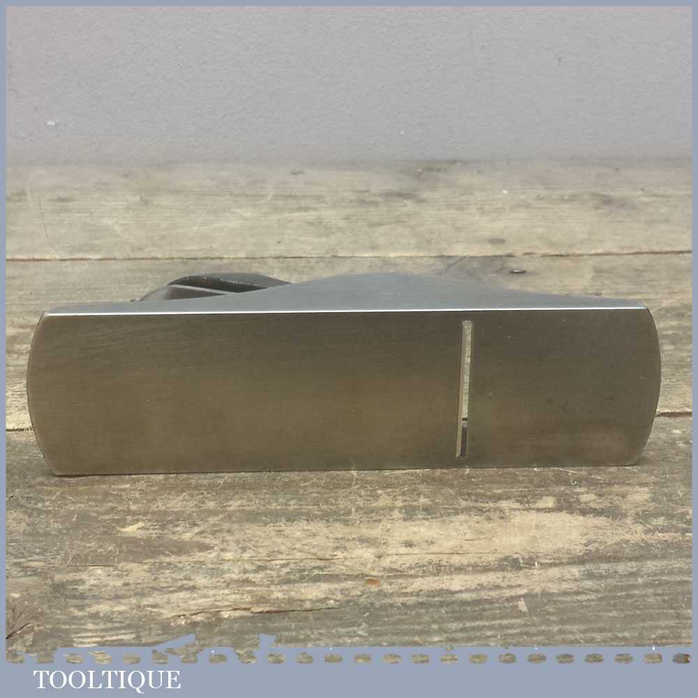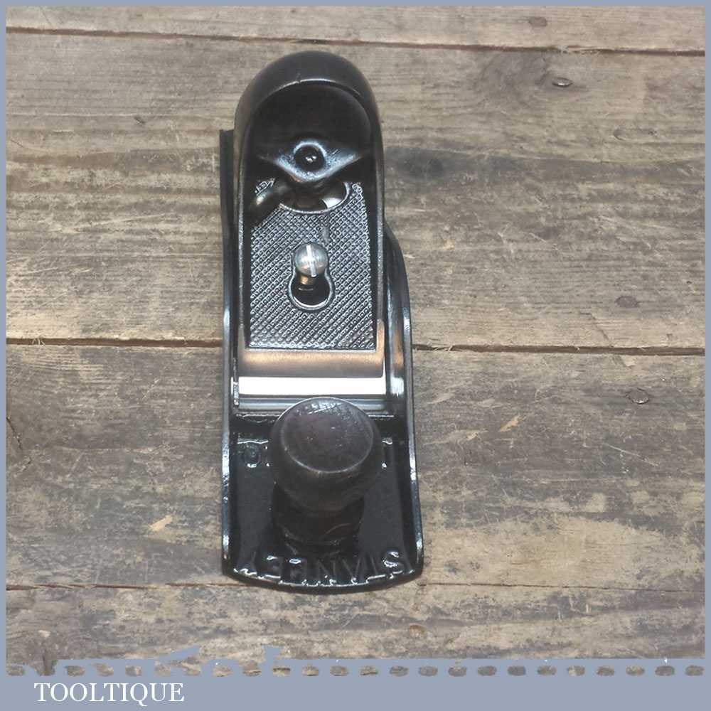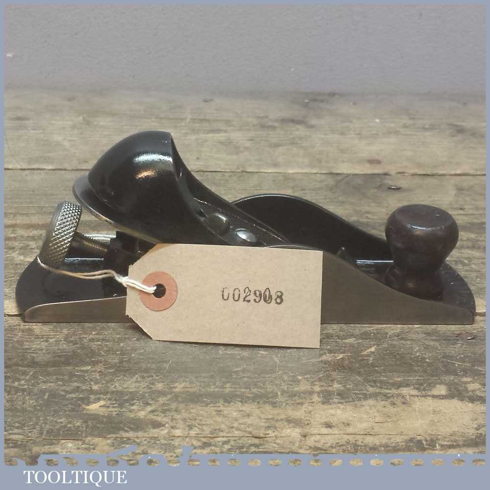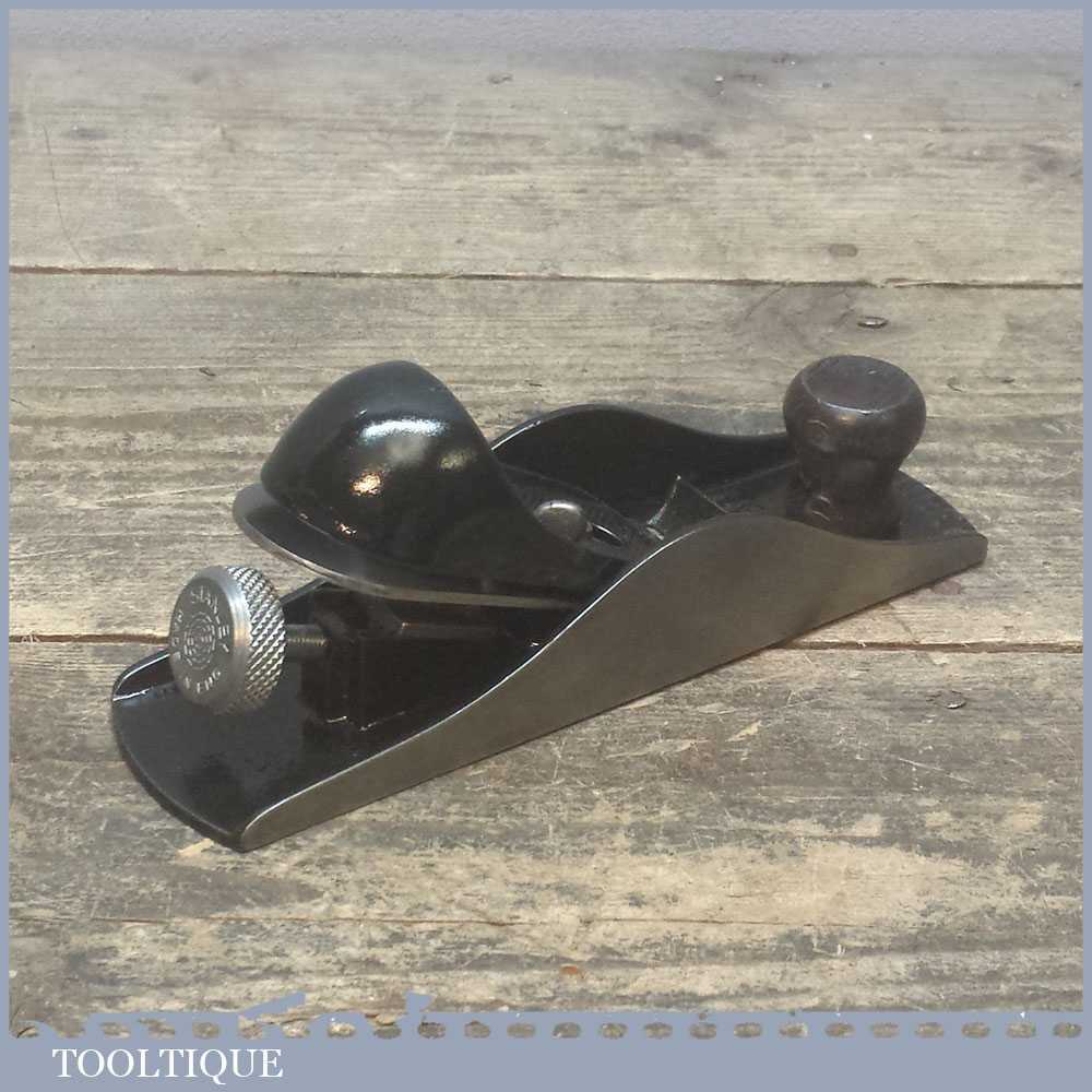 Vintage Stanley England No: 220 block plane with adjustable iron and in good useable condition. This planes has been lapped flat to improve the performance and it has been fully refurbished for use. Note: whilst refurbishing it we noticed the lever cap has a hairline crack at the top which doesn’t affect the usability however is worth mentioning.