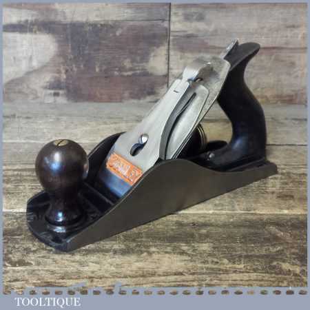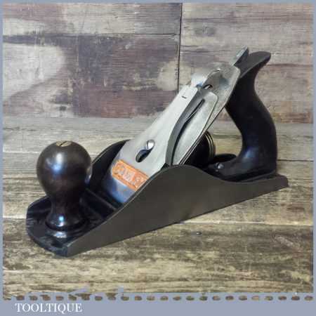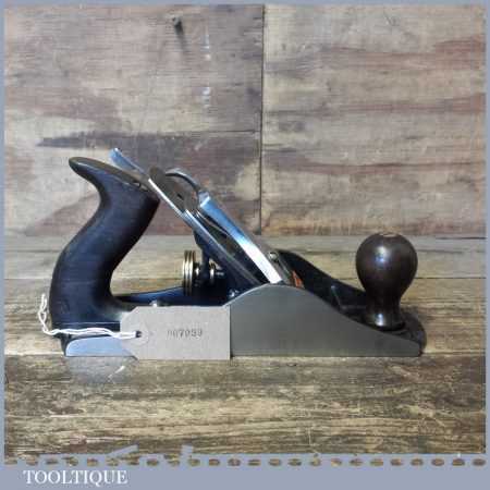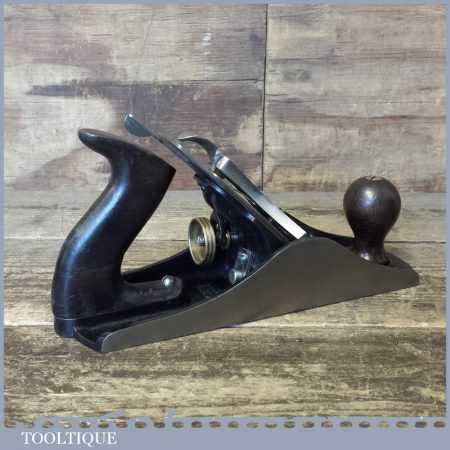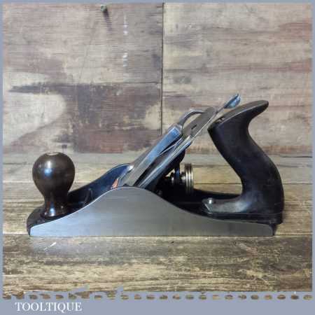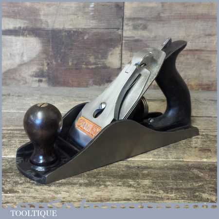 Vintage Stanley England No: 4 ½ wide bodied smoothing plane fully refurbished ready for use and in good used condition. Note: The handle has been repaired but is strong, hence price.