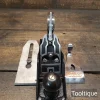 Vintage Stanley England No: 4 ½ Wide Bodied Smoothing Plane, fully refurbished ready for use and in good used condition. Note: 2 3/8” Iron, Solid and Smooth Tote Repair. When refurbishing planes, we do not merely clean them to make them look good, they are restored to a level that ensures this plane is actually ‘in plane to within 0.02mm’ sharpened, honed and all the components are thoroughly cleaned so that they move freely. Our planes are specifically reconditioned to satisfy professional tradesmen who will instantly know the difference between buying one of our planes over general other used ones.