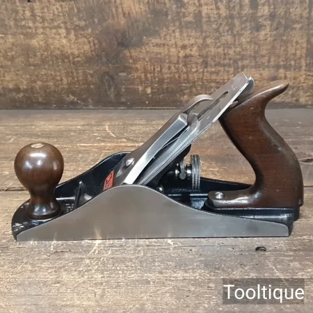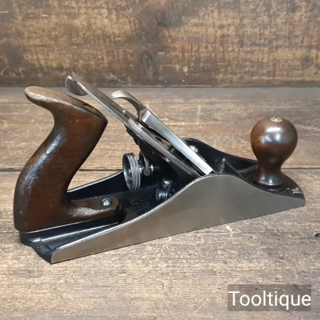 Vintage Stanley England No: 4 ½ Wide Bodied Smoothing Plane, fully refurbished ready for use and in good used condition. Note: 2 3/8” Iron & Beechwood Handles. When refurbishing planes, we do not merely clean them to make them look good, they are restored to a level that ensures this plane is actually ‘in plane to within 0.02mm’ sharpened, honed and all the components are thoroughly cleaned so that they move freely. Our planes are specifically reconditioned to satisfy professional tradesmen who will instantly know the difference between buying one of our planes over general other used ones.