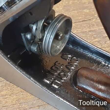 When refurbishing planes, we do not merely clean them to make them look good, they are restored to a level that ensures this plane is actually ‘in plane to within 0.02mm’ sharpened, honed and all the components are thoroughly cleaned so that they move freely. Our planes are specifically reconditioned to satisfy professional tradesmen who will instantly know the difference between buying one of our planes over general other used ones.