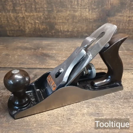 Vintage Stanley England No 4 Smoothing Plane with Beechwood Handles, fully refurbished ready for use and in good used condition. Note: 2” Iron. When refurbishing planes, we do not merely clean them to make them look good, they are restored to a level that ensures this plane is actually ‘in plane to within 0.01mm’ sharpened, honed and all the components are thoroughly cleaned so that they move freely. Our planes are specifically reconditioned to satisfy professional tradesmen who will instantly know the difference between buying one of our planes over general other used ones.