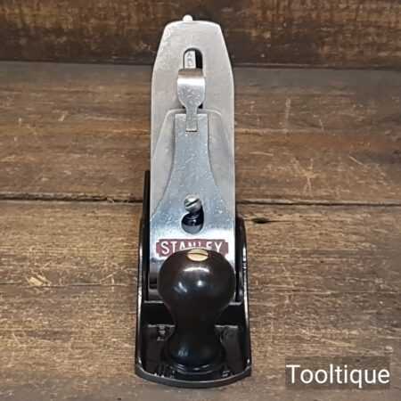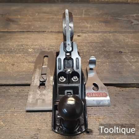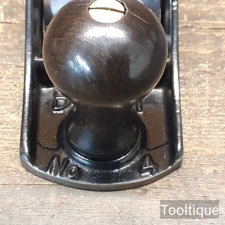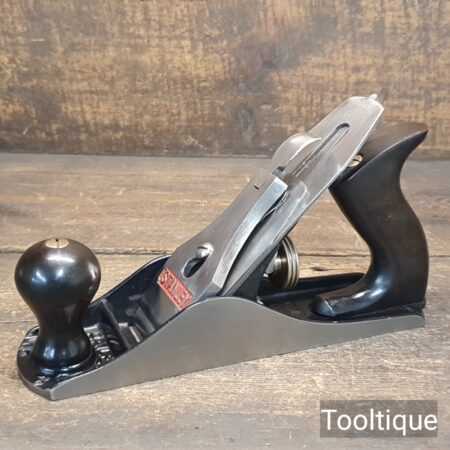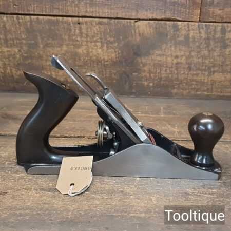 Vintage Stanley England No: 4 Smoothing Plane, fully refurbished ready for use and in good used condition. When refurbishing planes, we do not merely clean them to make them look good, these are restored to a level that ensures each plane is actually ‘in plane to within 0.02mm’ sharpened, honed and all the components are thoroughly cleaned so that they move freely. Our planes are specifically reconditioned to satisfy professional tradesmen who will instantly know the difference between buying one of our planes over general other used ones.