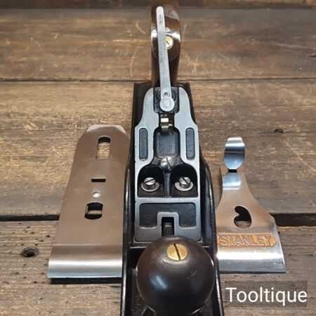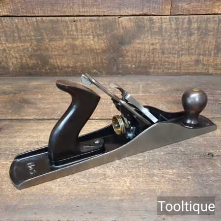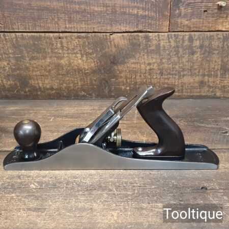 Vintage Stanley England No: 5 Jack Plane with Beechwood handles, in good used condition. When refurbishing planes, we do not merely clean them to make them look good, they are restored to a level that ensures this plane is actually ‘in plane to within 0.02mm’ sharpened, honed and all the components are thoroughly cleaned so that they move freely. Our planes are specifically reconditioned to satisfy professional tradesmen who will instantly know the difference between buying one of our planes over general other used ones.