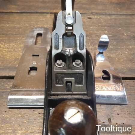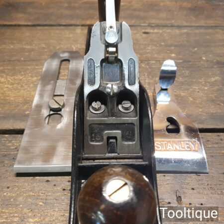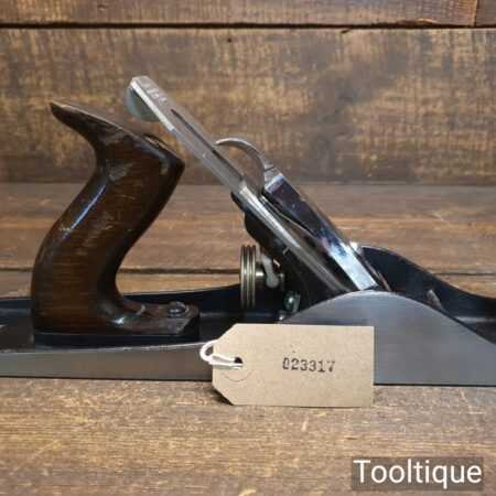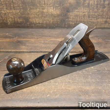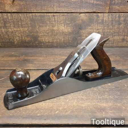 Vintage Stanley England No: 5 jack plane, fully refurbished and in good used condition, ready to use. When refurbishing planes, we do not merely clean them to make them look good, they are restored to a level that ensures they are actually ‘in plane to 0.025mm’ sharpened, fettled & honed and all the components are thoroughly cleaned so that they move freely. Our planes are specifically reconditioned to satisfy professional tradesmen who will instantly know the difference between buying one of our planes over general other used ones.