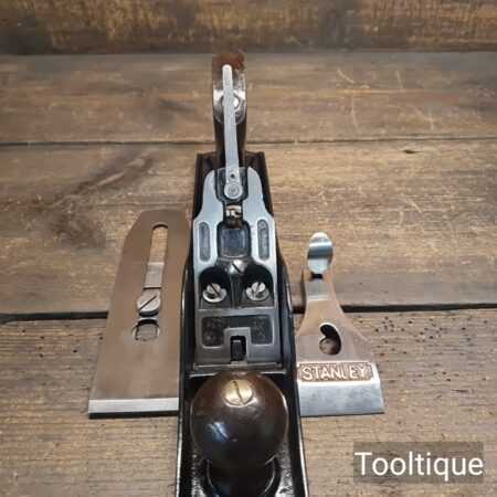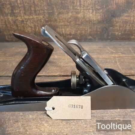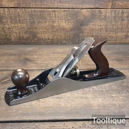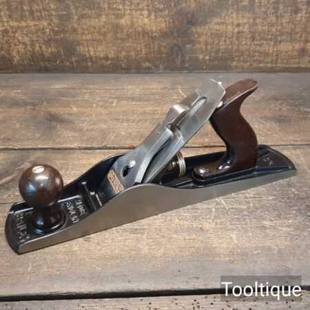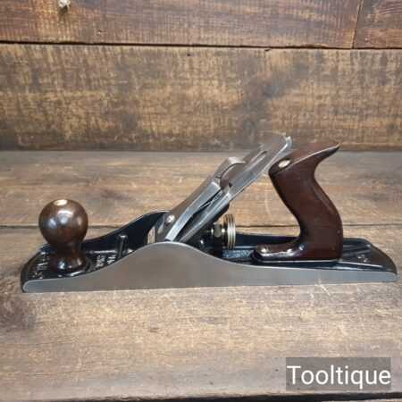 Vintage Stanley England No: 5 Jack plane with Beechwood Handles, fully refurbished ready for use and in good used condition. When refurbishing planes, we do not merely clean them to make them look good, these are restored to a level that ensures each plane is actually ‘in plane to within 0.03mm’ sharpened, honed and all the components are thoroughly cleaned so that they move freely. Our planes are specifically reconditioned to satisfy professional tradesmen who will instantly know the difference between buying one of our planes over general other used ones.