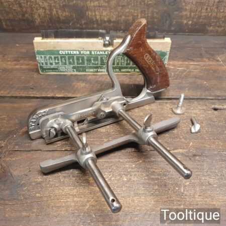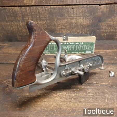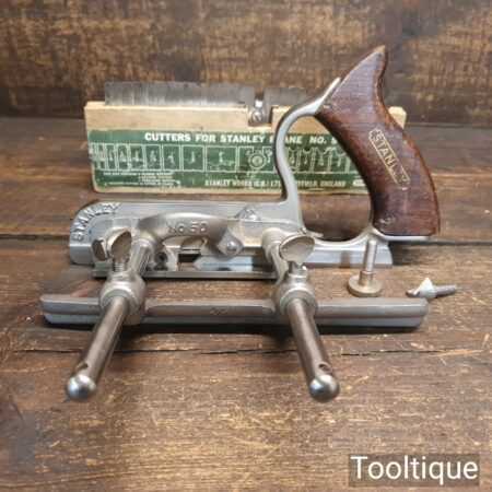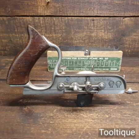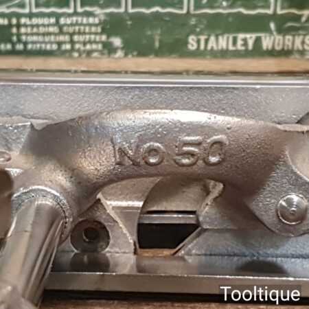 Vintage Stanley England No: 50 combination plough plane complete with 17 cutters, fully refurbished and ready for use. The plane is in good condition and all components move smoothly. Note: We do not sharpen the irons