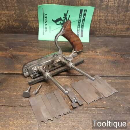 Vintage Stanley England No: 50 combination plough plane complete with 17 cutters, fully refurbished and ready for use. The plane is in good condition and all components move smoothly. Note: We do not sharpen the irons
